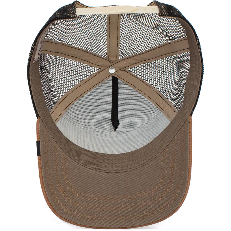 Die braune Trucker-Kappe Cock The Farm von Goorin Bros. ist das perfekte Accessoire für alle, die einen einzigartigen und authentischen Stil suchen. Mit ihrem Unisex-Design ist diese Kappe ideal für Männer und Frauen, die ihre Persönlichkeit hervorheben und mit ihrer Kleidung einen Unterschied machen möchten. Der Snapback-Verschluss der Kappe sorgt für einen perfekten und bequemen Sitz, sodass Sie sie den ganzen Tag ohne Sorgen tragen können.